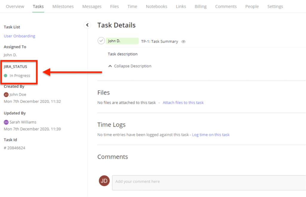 6.1.2.2 For the status sync to happen, SoftSync generates a custom field in Teamwork with the name: JIRA_STATUS to represent the Jira status as Teamwork supports only open and closed statuses. Please note that custom fields are supported only on Enterprise plans in Teamwork.