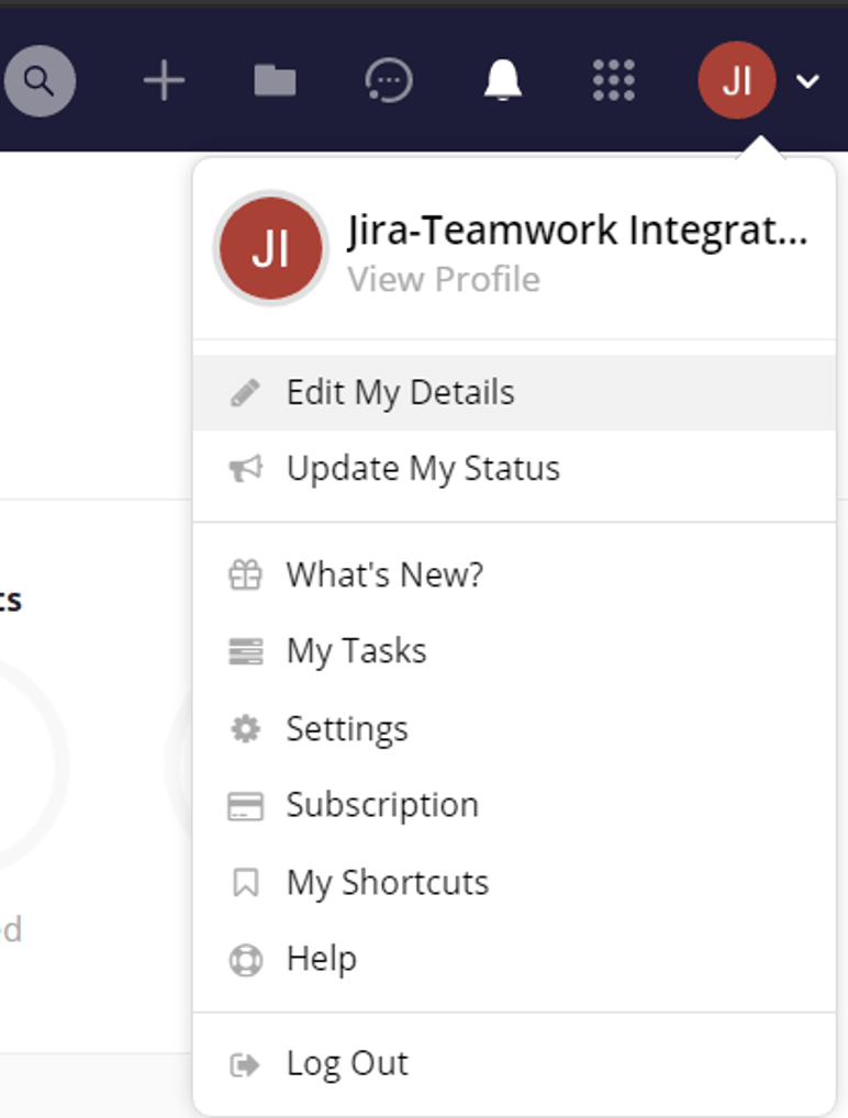 Teamwork API Key: To get your Teamwork API key, you must be logged in to the Teamwork admin account you created for SoftSync. Please refer to section 2.1 Account for more details. Click on the profile icon at the top right corner of your screen, where you’ll see your account’s details. Then, click on ‘Edit My Details’: